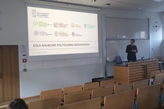 Popołudniowa część seminarium została poświęcona prezentacji działalności kół naukowych, w tym omówieniu ich inicjatyw, osiągnięć oraz wyzwań poznawczych i projektowych podejmowanych przez studentów. W ramach wstępu dr inż. Bartosz Pawłowicz, opiekun kół naukowych na Politechnice Rzeszowskiej, przedstawił charakterystykę aktywności młodych naukowców, wprowadzając uczestników w ogólną tematykę ich działalności badawczej. Następnie studenci pochwalili się swoimi doświadczeniami: