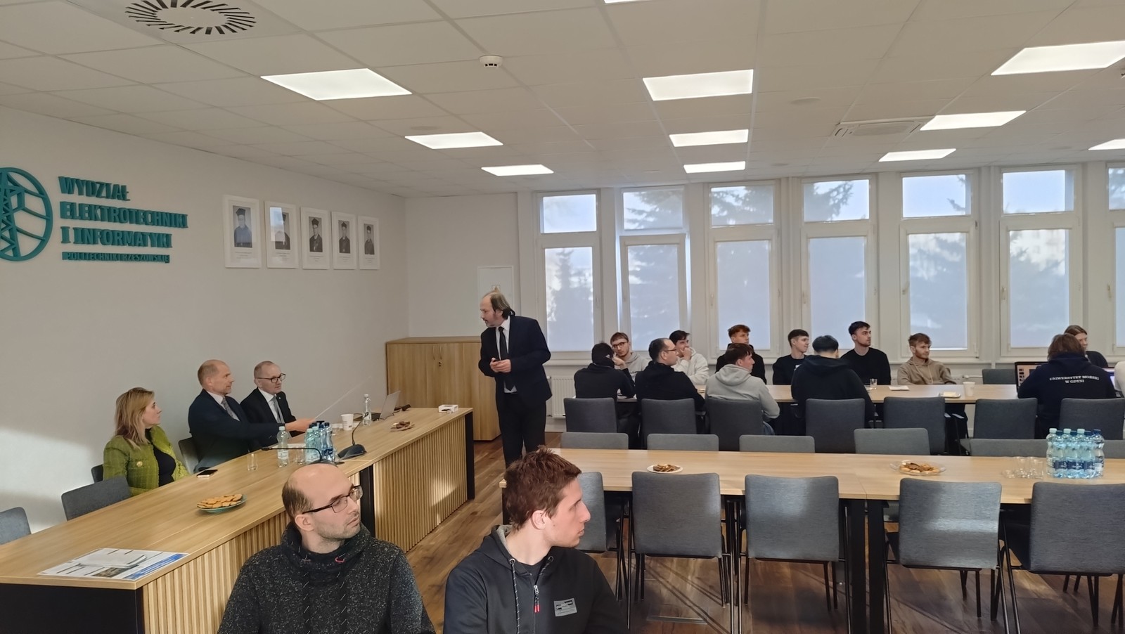W dniu 5 grudnia 2025 roku, na Wydziale Elektrotechniki i Informatyki (WEiI) Politechniki Rzeszowskiej (PRz) odbyło się Międzyuczelniane Seminarium Naukowe „Akademia Innowacji” połączone ze spotkaniem technicznym Instytutu Inżynierów Elektryków i Elektroników (IEEE jest międzynarodową organizacją zrzeszającą specjalistów z dziedziny elektryki, elektroniki, informatyki i pokrewnych obszarów technologii). Organizatorami spotkania były koła naukowe działające na Politechnice Rzeszowskiej oraz Uniwersytecie Morskim w Gdynie (UMG) we współpracy z oddziałami Electron Devices Society (ED-15) oraz Electronics Packaging Society (EP-21) należącymi do polskiej sekcji IEEE.
