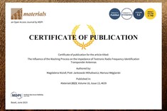 Nizioł M., Jankowski-Mihułowicz P., Węglarski M.: The Influence of the Washing Process on the Impedance of Textronic Radio Frequency Identification Transponder Antennas, Materials, Vol. 16, No. 13, 4639, 2023 (DOI: 10.3390/ma16134639).