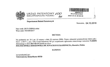 29.10.2019 r. podczas konferencji Podkarpackiego Centrum Innowacji nastąpiło uroczyste wręczenie symbolicznej dotacji w wysokości 124450 zł przeznaczonej na projekt badawczy z zakresu RFID (...)