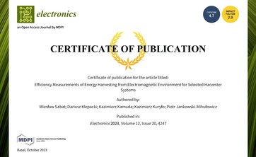 13 października 2023 r. w czasopiśmie Electronics (MEiN 140 pkt, IF: 2.9) ukazała się nasza kolejna publikacja dotycząca możliwości konstrukcji bezbateryjnego identyfikatora-czujnika RFID (...)