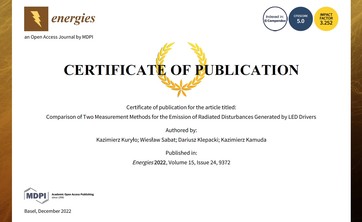 11 grudnia 2022 r. w czasopiśmie Energies (MEiN 140 pkt, IF: 3.252) ukazała się nasza kolejna publikacja z zakresu kompatybilności elektromagnetyczne j(...)