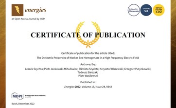 W wyniku współpracy naukowo-przemysłowej, 9 grudnia 2022 r. w czasopiśmie Energies ukazała się nasza kolejna publikacja, tym razem dotycząca interakcji pola elektromagnetycznego i przyrody (...)