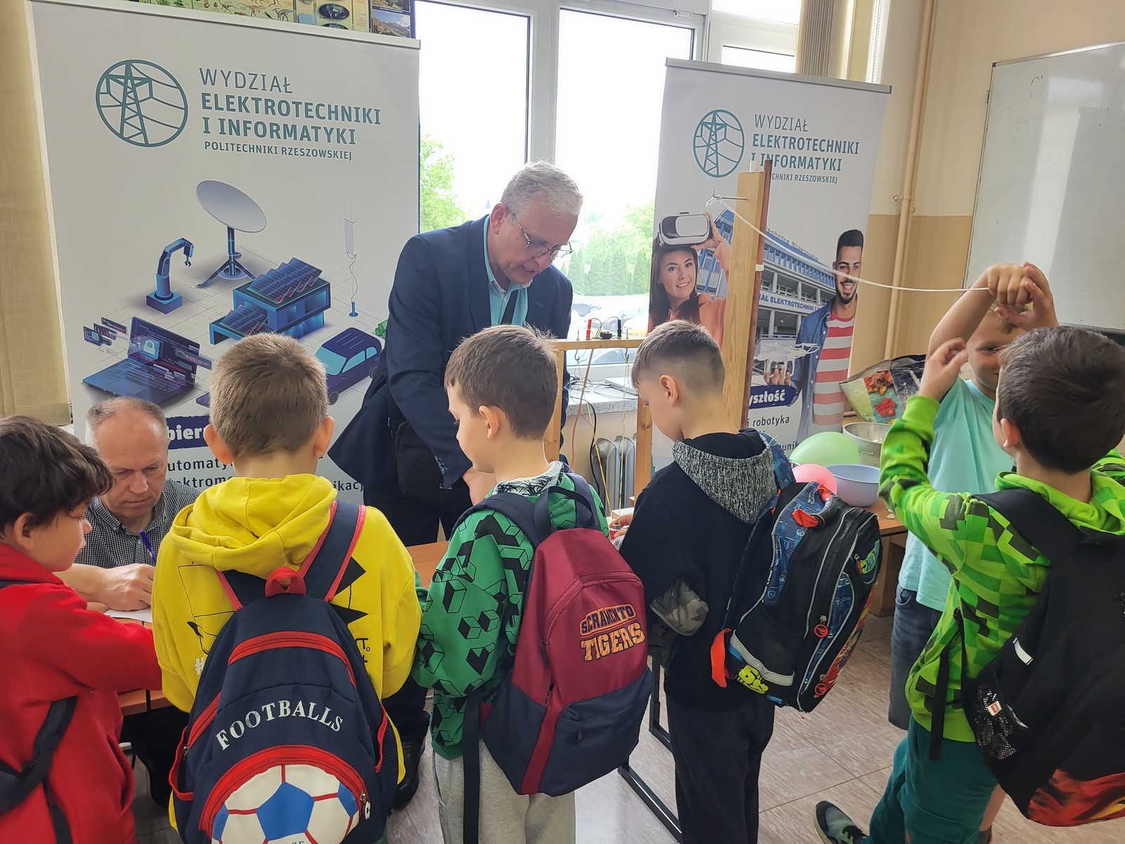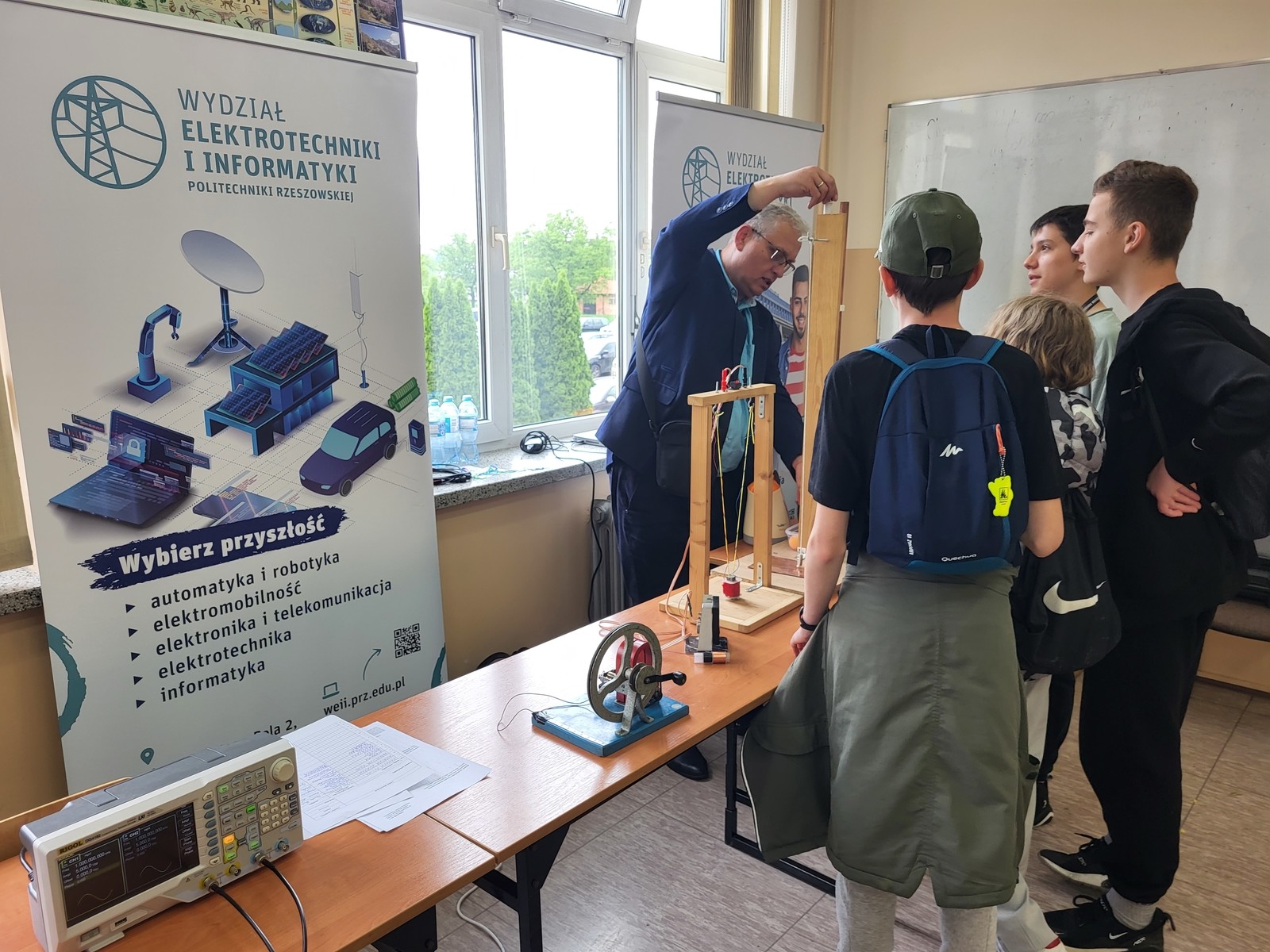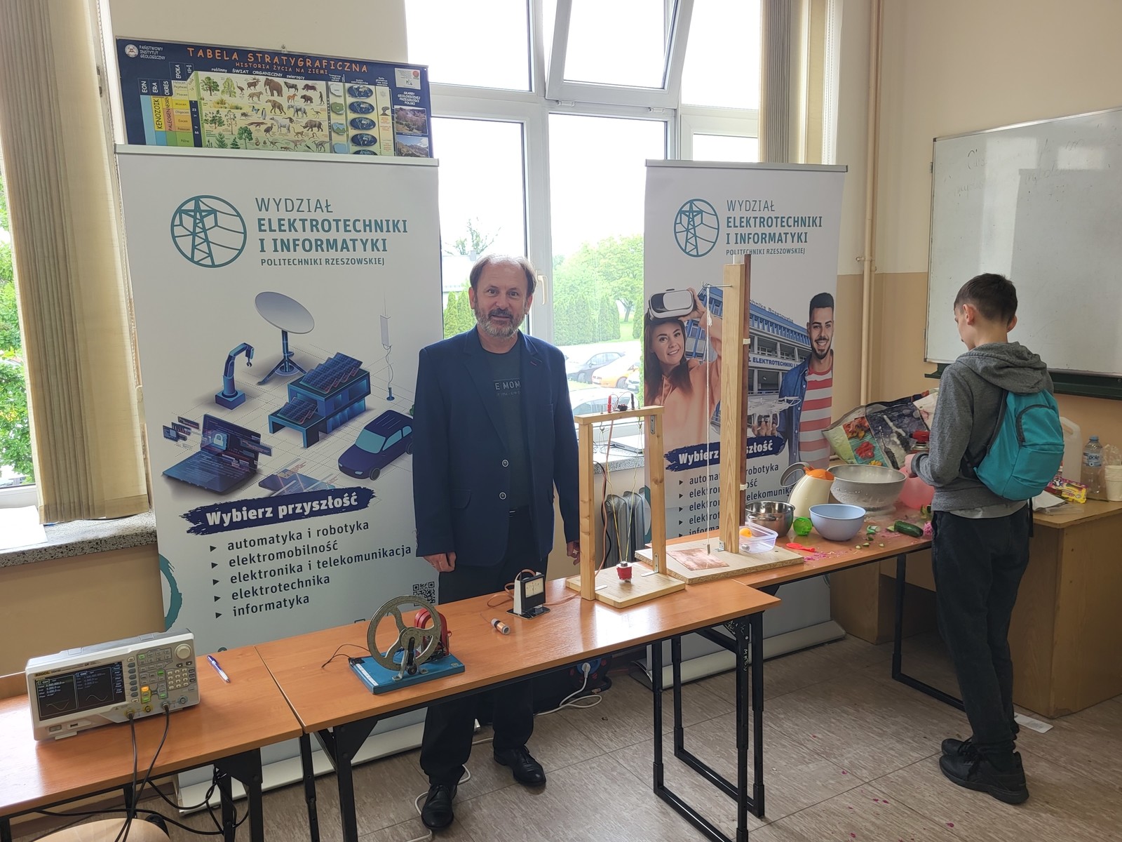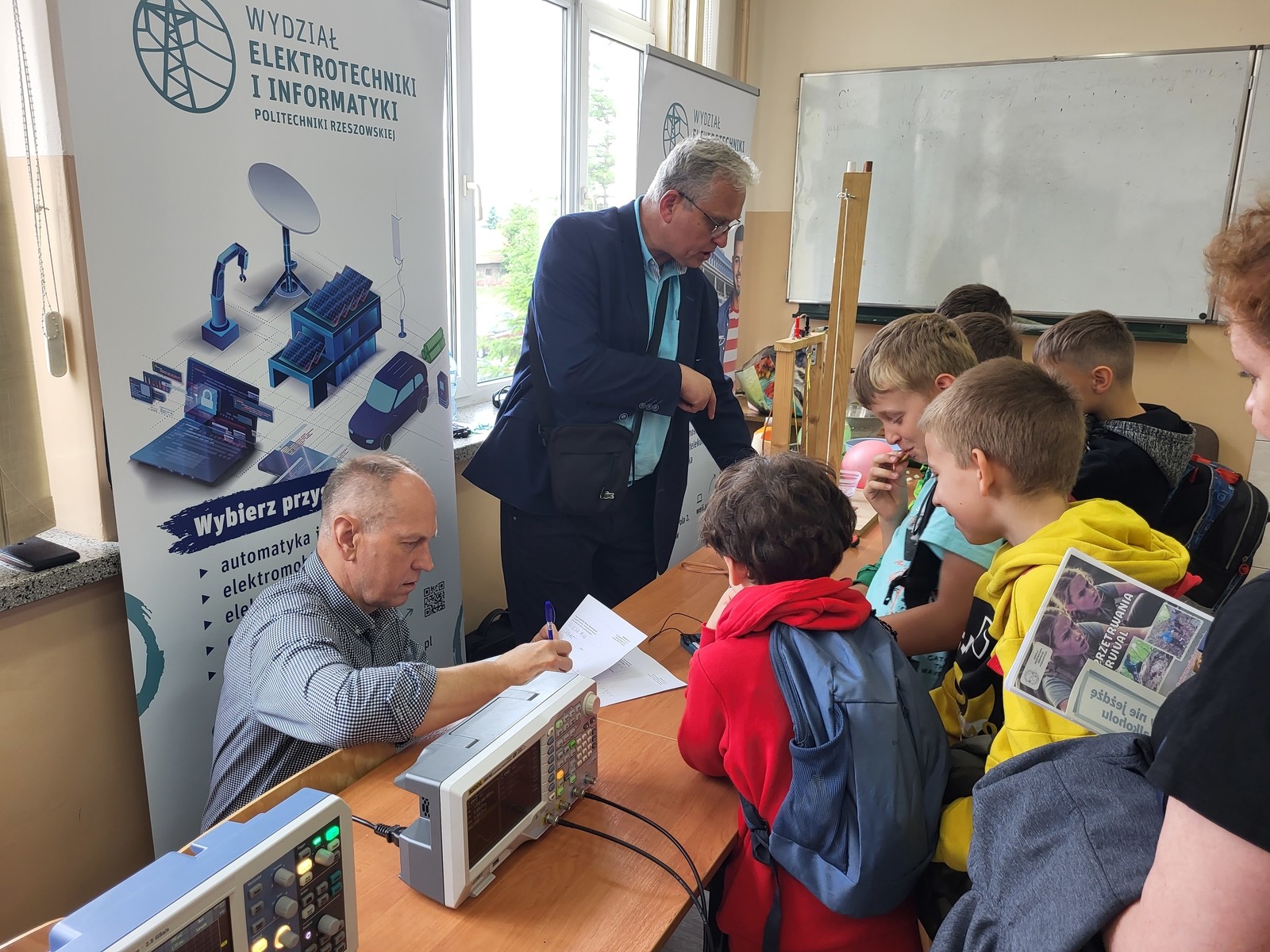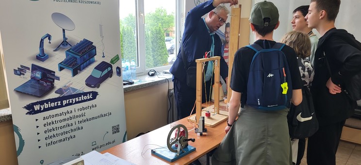 Zespół ZSEiT w składzie dr inż. Kazimierz Kuryło, dr inż. Wiesław Sabat oraz dr inż. Kazimierz Kamuda zaprezentowali licznie zgromadzonej młodzieży zagadnienia związane z podstawami elektromagnetyzmu oraz fizyki ciała stałego w niskich temperaturach (z wykorzystaniem ciekłego azotu). Efektowne doświadczenia i pokazy cieszyły się dużym zainteresowaniem uczestników, którzy oprócz ciekawie zaprezentowanej wiedzy otrzymywali również drobne upominki ufundowane przez Politechnikę Rzeszowską w postaci gadżetów firmowych.