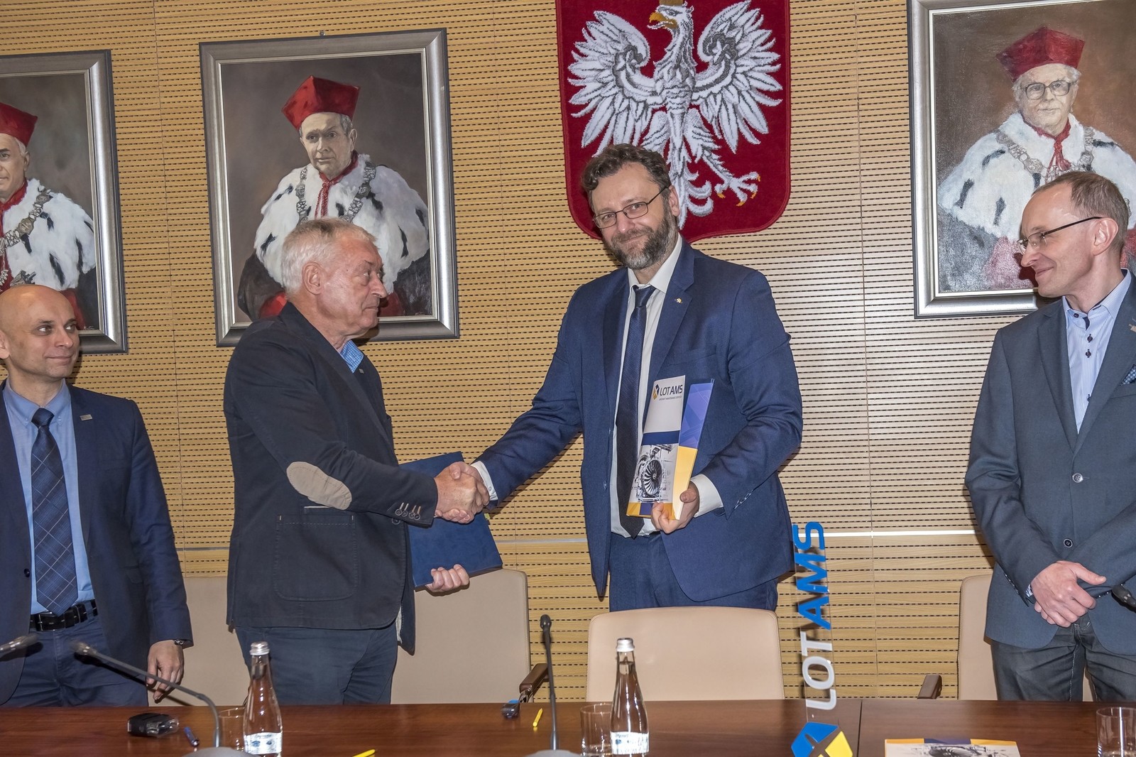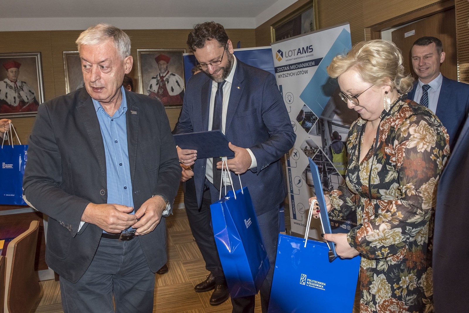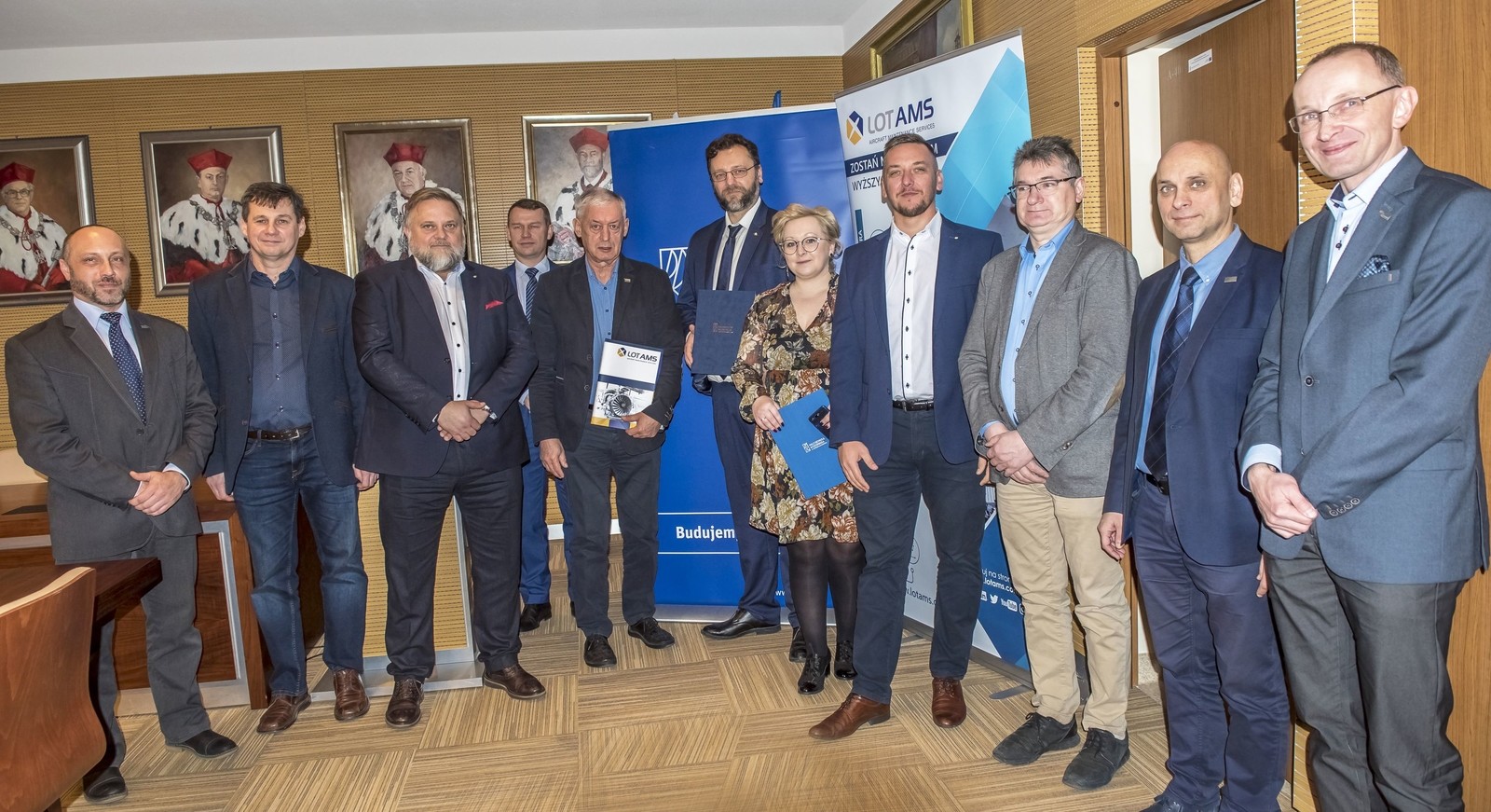 Z inicjatywy Katedry Systemów Elektronicznych i Telekomunikacyjnych (KSEiT) na Wydziale Elektrotechniki i Informatyki (WEiI) przy współudziale Wydziału Budowy Maszyn i Lotnictwa (WBMiL), w dniu 17 grudnia 2019 r. nastąpiło podpisanie ramowej umowy o współpracy pomiędzy Politechniką Rzeszowską i LOT Aircraft Maintenance Services (LOTAMS). Przedmiotową umową objęto prowadzenie zaawansowanych prac badawczo-rozwojowych, wspieranie procesu dydaktycznego, wymianę informacji o nowych technologiach oraz konsultacje pomiędzy LOTAMS a Politechniką w zakresie dziedzin elektroniki, telekomunikacji, informatyki, automatyki, robotyki, elektrotechniki, lotnictwa, mechatroniki, inżynierii produkcji i transportu, ukierunkowanych na rozwój branży lotniczej. Umowę podpisali prof. dr hab. inż. Tadeusz Markowski, Rektor PRz i Marcin Kwietniak, Dyrektor Biura Sprzedaży i Rozwoju Produktu w LOTAMS.