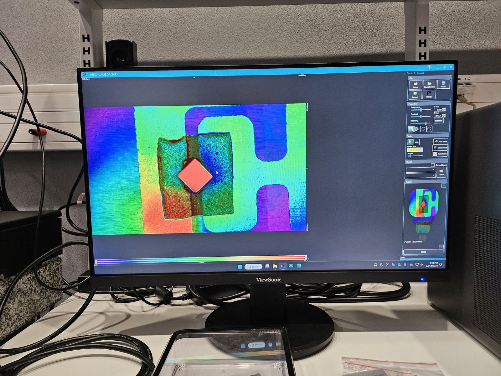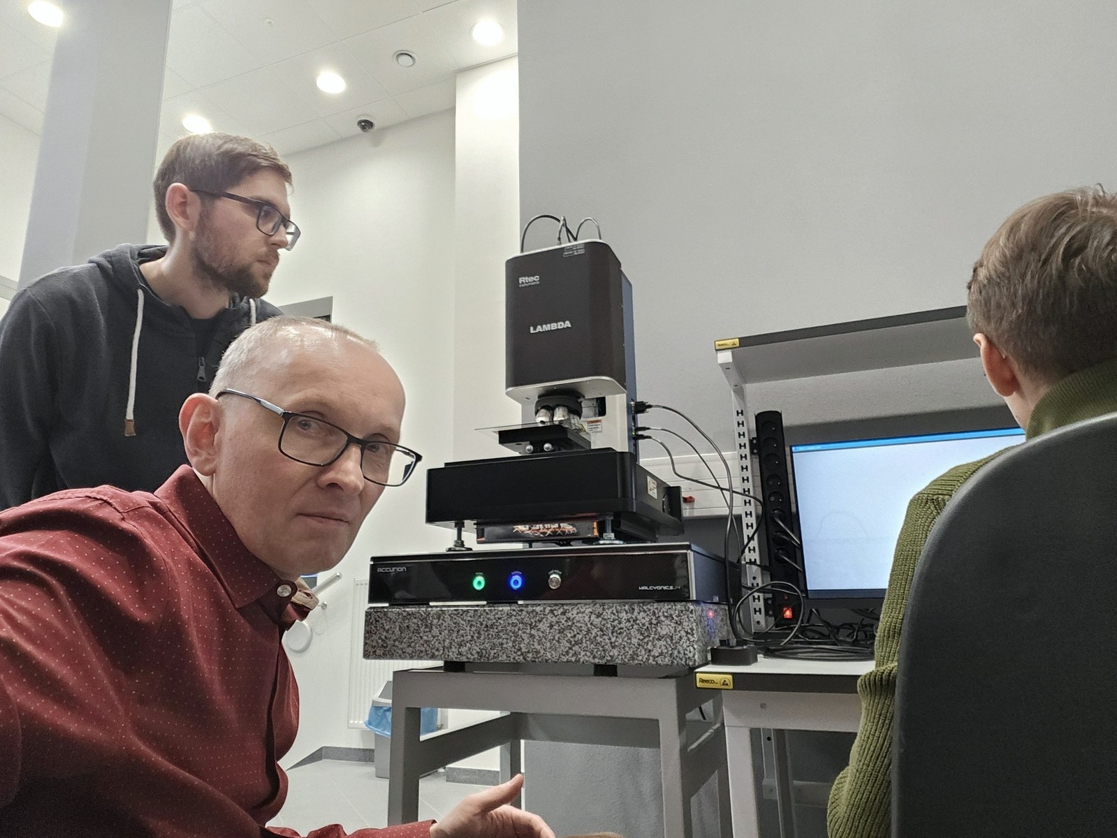 Po realizacji prac instalacyjnych odbyło się szkolenie, którym objęto konfigurację oraz obsługę profilometru optycznego i jego oprogramowania. Zostało ono zrealizowane przez panów Jacka Majewskiego i Mateusza Cużytka z firmy Technosolutions. W szkoleniu uczestniczyli wybrani pracownicy ZSEiT: dr hab. inż. Piotr Jankowski-Mihułowicz, prof. PRz, mgr inż. Kacper Skrobacz, mgr inż. Patryk Pyt oraz mgr inż. Aleksandr Kolomijec. W trakcie tych prac m. in. badano profile układów mikroelektronicznych identyfikatorów RFID, jakie były wykonywane w różnych procesach technologicznych podczas dotychczasowej współpracy m.in. z Talkin Things SA, ML System SA oraz Aluron Sp. z o.o.