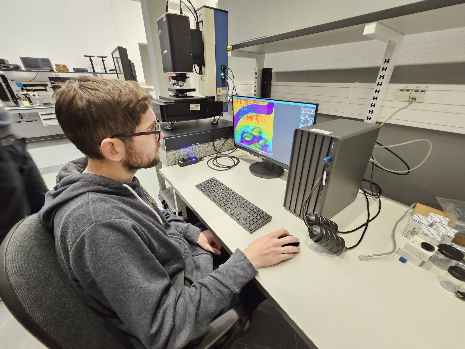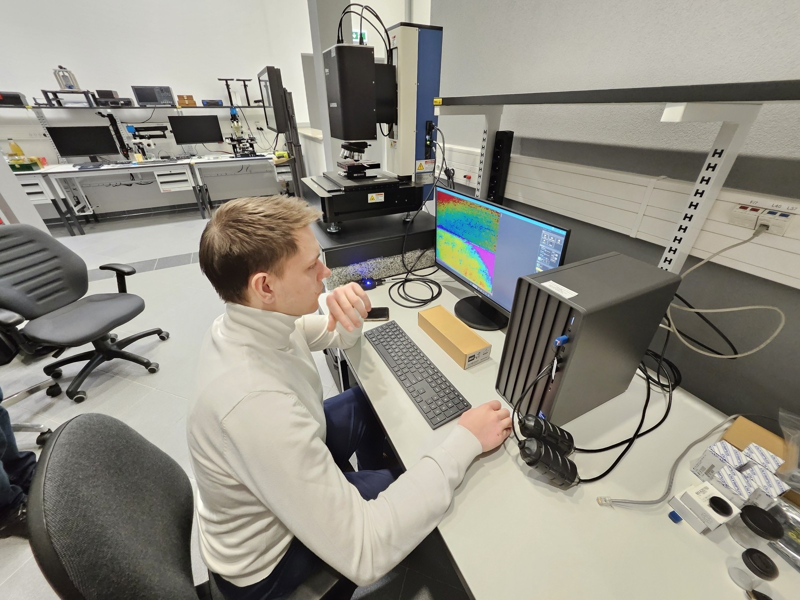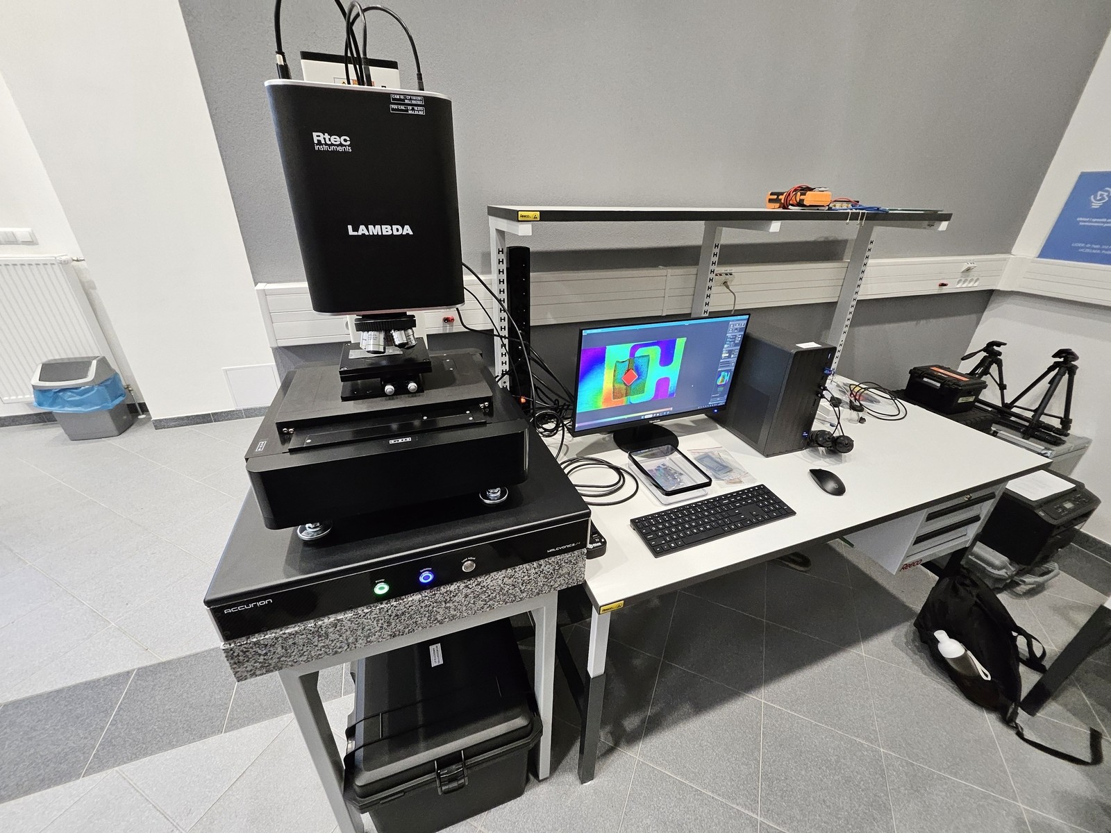 Zakupiona aparatura to drugi kluczowy element budowanego w ZSEiT systemu do montażu struktur półprzewodnikowych. Przedmiotowy profilometr optyczny zostanie przede wszystkim wykorzystana do analizy powierzchni opracowywanych struktur mikroelektronicznych przy wykorzystaniu mikroskopii konfokalnej oraz techniki interferometrii białego światła. Dzięki tym metodom badawczym możliwe będzie wykonywanie pomiarów topografii różnych powierzchni 3D (twardych, miękkich, gładkich, teksturowanych), z rozdzielczością pionową rzędu nanometrów. Uzyskiwanie tak precyzyjnych pomiarów jest możliwe dzięki zastosowaniu dodatkowego systemu izolacji drgań Accurion i4 Medium, który zapewnia ochronę aparatury przed zakłóceniami pochodzącymi z otoczenia. Kluczowym komponentem dostarczonego profilometru jest także zaawansowane oprogramowanie MountainsMap francuskiej firmy Digital Surf, które między innymi zostanie wykorzystane do tworzenia modeli topografii makro lub mikroskopowych powierzchni w przestrzeni 3D, a także do wyznaczania chropowatości, falistości i objętości zgodnie z międzynarodowymi standardami (ISO, ASME).