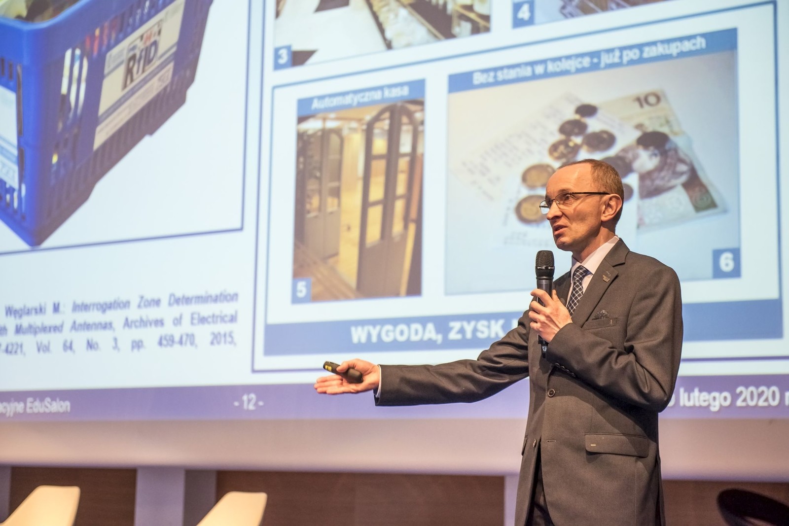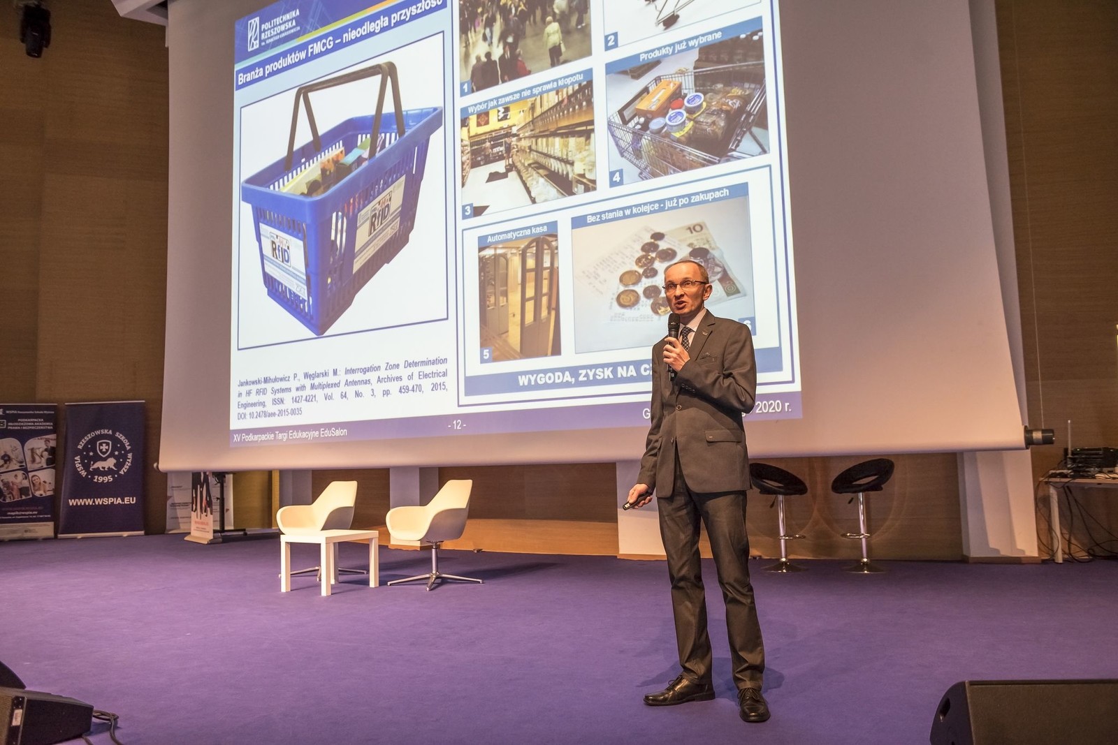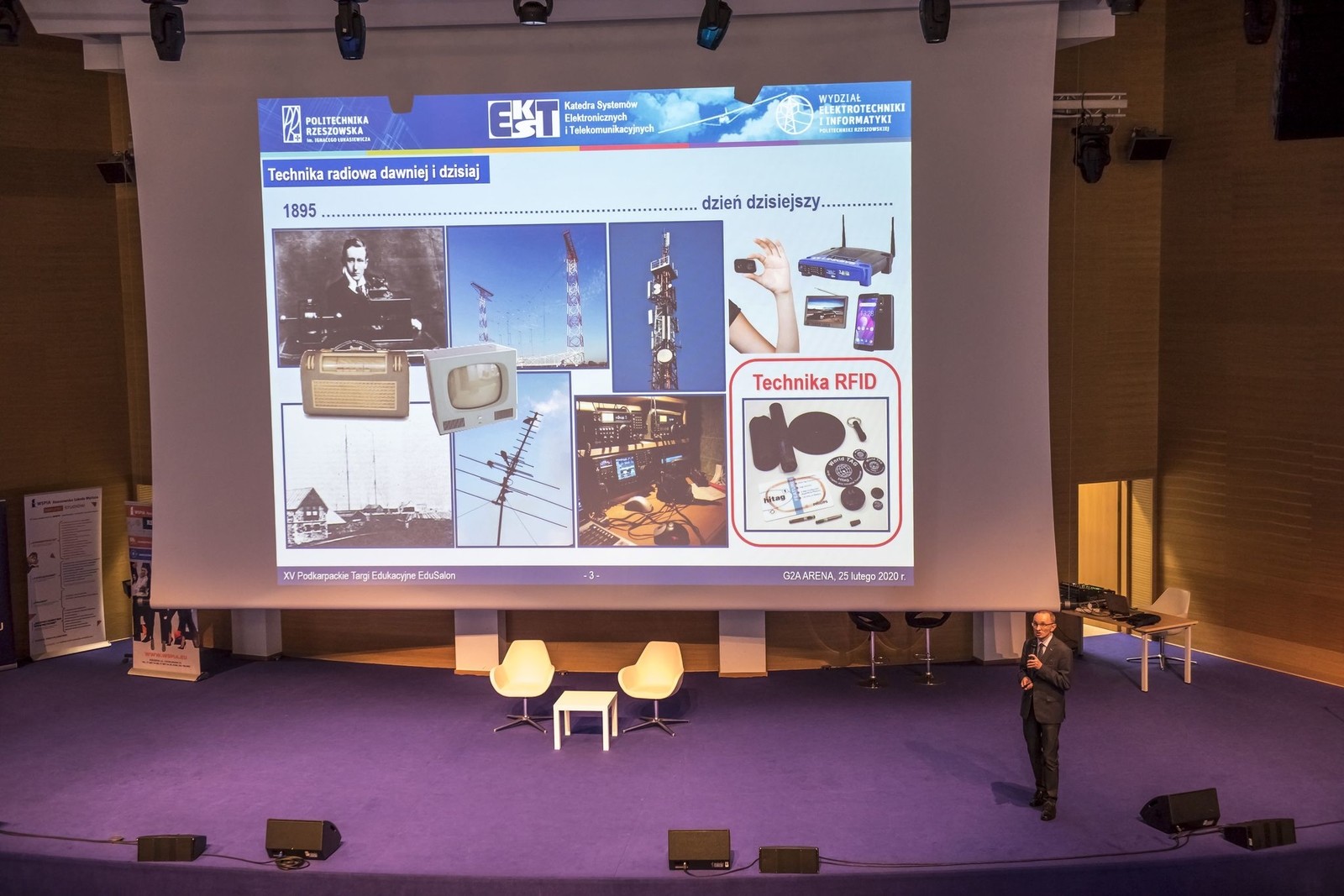25 lutego 2020 r. dr hab. inż. Piotr Jankowski-Mihułowicz, prof. PRz miał przyjemność poprowadzić lekcję zupełnie inną niż zwykle na temat techniki radiowej identyfikacji obiektów RFID. Lekcja ta odbyła się w ramach warsztatów dla uczniów, jakie zostały zorganizowane podczas XV edycji Podkarpackich Targów Edukacyjnych EduSalon w Centrum Wystawienniczo-Kongresowym Województwa Podkarpackiego G2A ARENA w Jasionce. Podczas wykładu w sposób wyjątkowo obrazowy zostały omówione wybrane wynalazki, a także praktyczne efekty prac badawczo-rozwojowo-wdrożeniowych, jakie na przestrzeni ostatnich lat zrealizowano w Zespole Katedry Systemów Elektronicznych i Telekomunikacyjnych, między innymi w ramach projektu 027/RID/2018/19 i innych umów z partnerami przemysłowymi. W ten sposób wyjaśniono słuchaczom to, czym jest technika RFID i jakie jest jej praktyczne zastosowanie oraz przyszłość w otaczającym świecie.