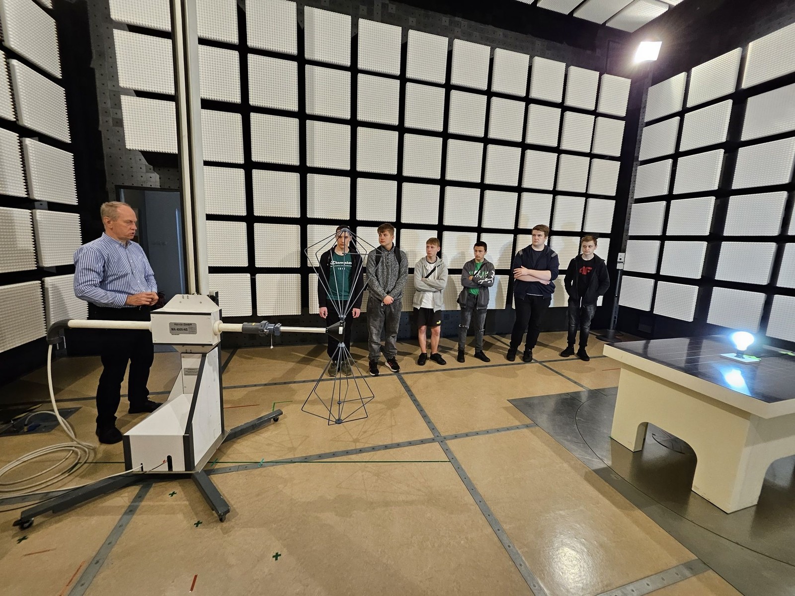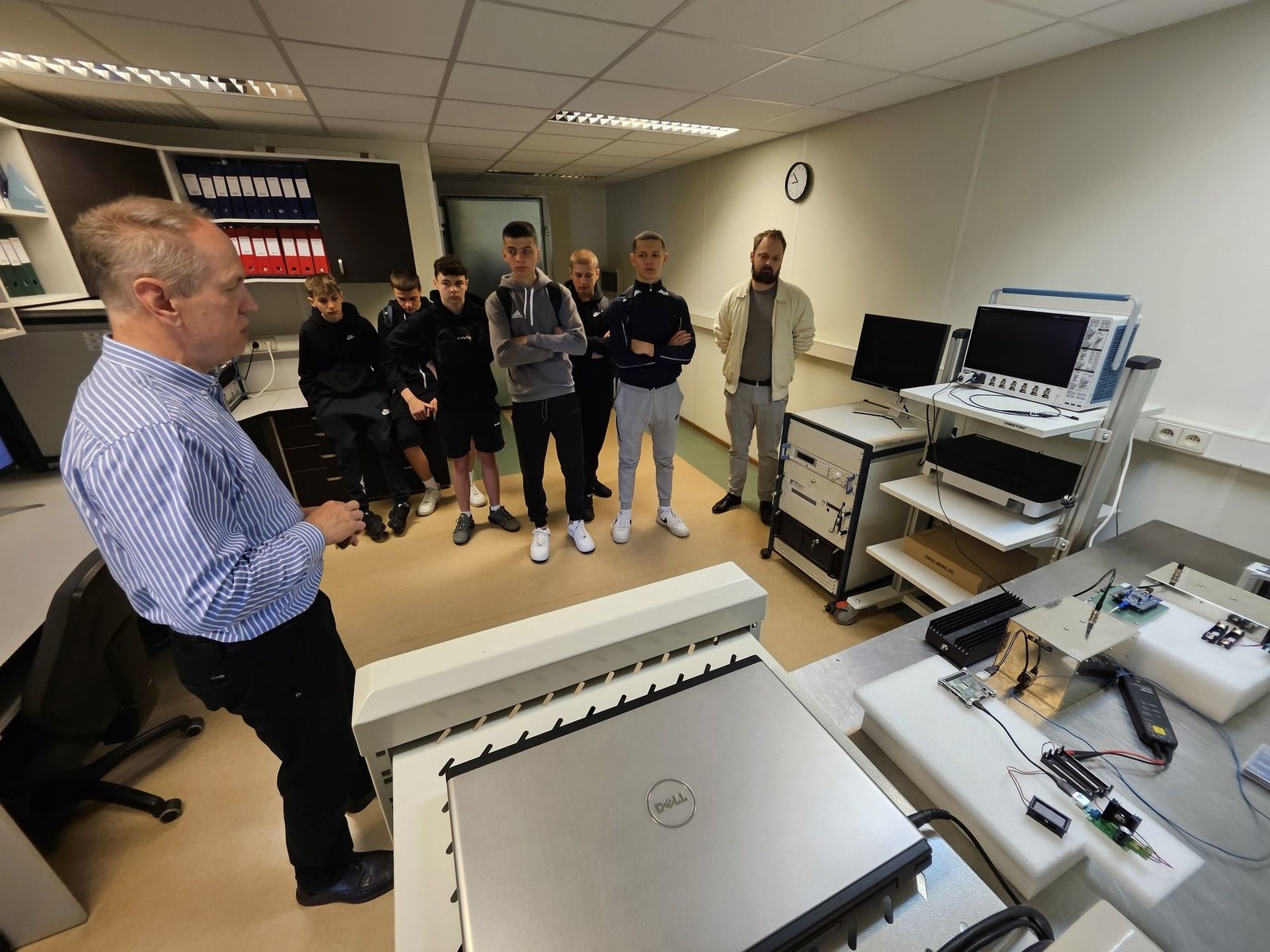W dniu 28 maja 2025 r. mieliśmy przyjemność gościć w Zakładzie Systemów Elektronicznych i Telekomunikacyjnych uczniów i nauczycieli z Zespołu Szkół Technicznych im. Bohaterów Września 1939 r. w Kolbuszowej. W trakcie spotkania dr hab. inż. Piotr Jankowski-Mihułowicz, prof. PRz omówił wybrane innowacyjne prace badawczo-rozwojowe, współpracę z gospodarką i efekty komercjalizacyjne w zakresie techniki radiowej identyfikacji obiektów (RFID). Z kolei dr inż. Wiesław Sabat zaprezentował podobny obszar działalności Zakładu w obszarze zagadnień związanych z kompatybilnością elektromagnetyczną (EMC).