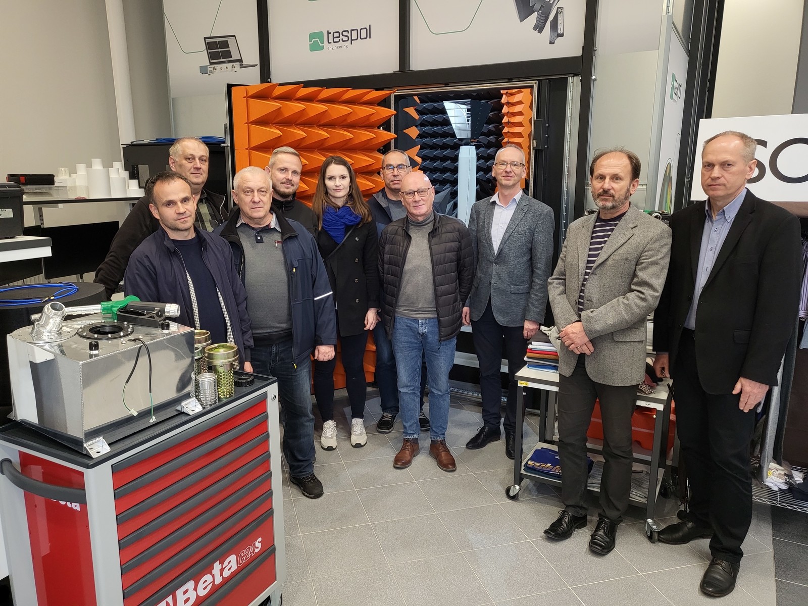 W trakcie wizyty dr hab. inż. Piotr Jankowski-Mihułowicz (kierownik KSEiT), dr inż. Wiesław Sabat (kierownik laboratorium EMC) oraz dr inż. Kazimierz Kamuda (kierownik techniczny laboratorium EMC) zapoznali Gości z UKE ze specyfiką prac B+R+W prowadzonych w Katedrze. Następnie zaprezentowali i omówili specjalistyczne wyposażenie laboratoriów kompatybilności elektromagnetycznej EMC oraz techniki radiowej identyfikacji RFID, a także obszerną współpracę z otoczeniem społeczno-gospodarczym. Podczas zwiedzania laboratoriów szczególną uwagę zwrócono na aparaturę niedawno zakupioną z projektu pn. „Polska Sieć Laboratoriów EMC (EMC-LabNet)” (POIR.04.02.00-02-A007/16), współfinansowanego w ramach Europejskiego Funduszu Rozwoju Regionalnego ze środków Działania 4.2 Rozwój Nowoczesnej Infrastruktury Badawczej Sektora Nauk, Programu Operacyjnego Inteligentny Rozwój 2014-2020. Przy tej okazji omówiono także możliwości współpracy UKE z KSEiT, a także korzyści, jakie przyniesie gospodarce regionu akredytacja laboratorium EMC, która aktualnie jest finalizowana w ramach projektu badawczego „Regionalne Centrum Doskonałości Automatyki i Robotyki, Informatyki, Elektrotechniki, Elektroniki oraz Telekomunikacji Politechniki Rzeszowskiej”, finansowanego przez MEiN z programu „Regionalna Inicjatywa Doskonałości” (nr 027/RID/2018/19).