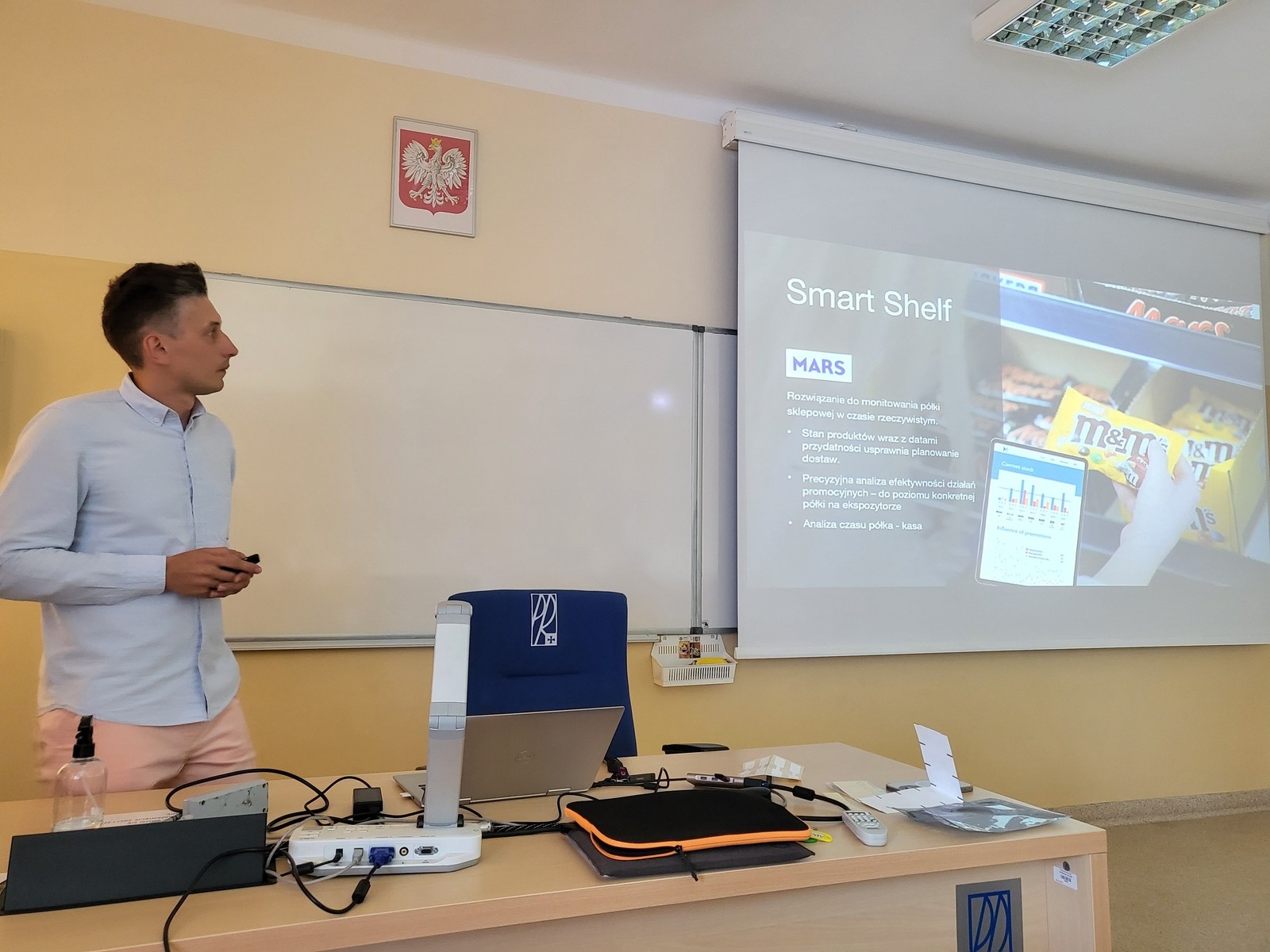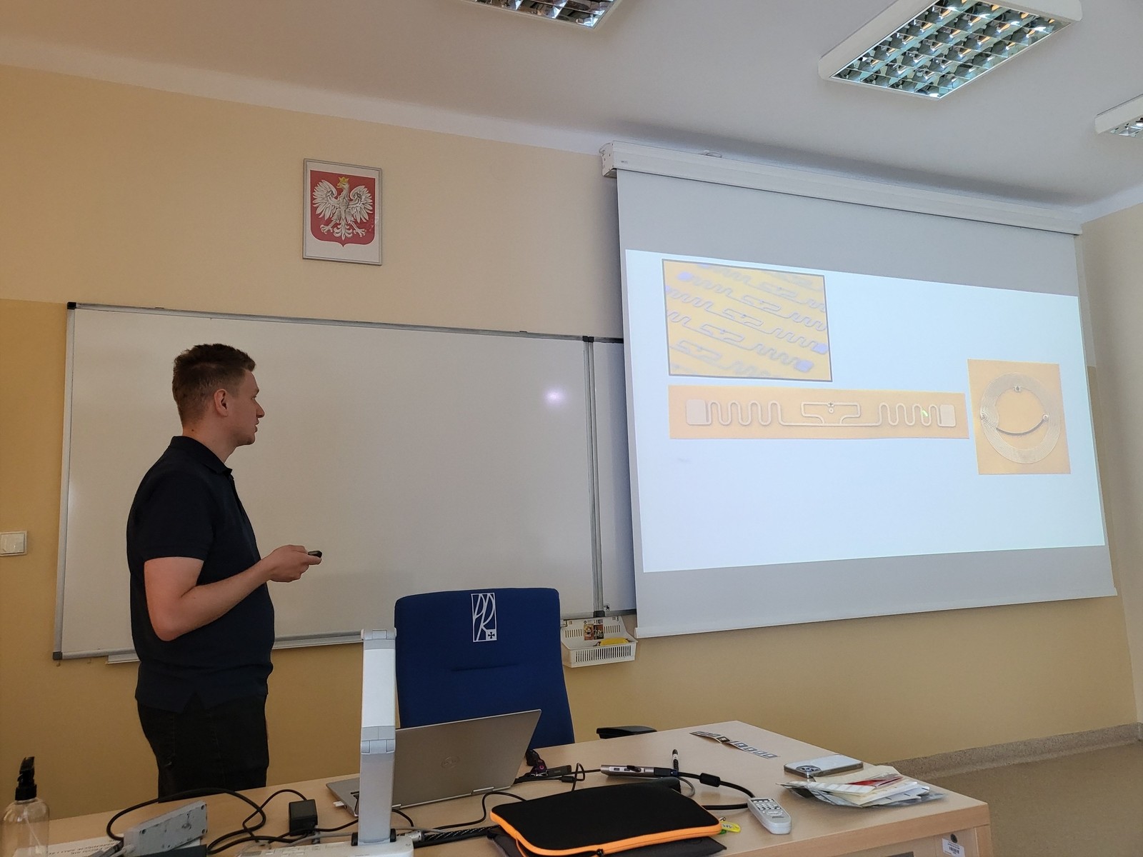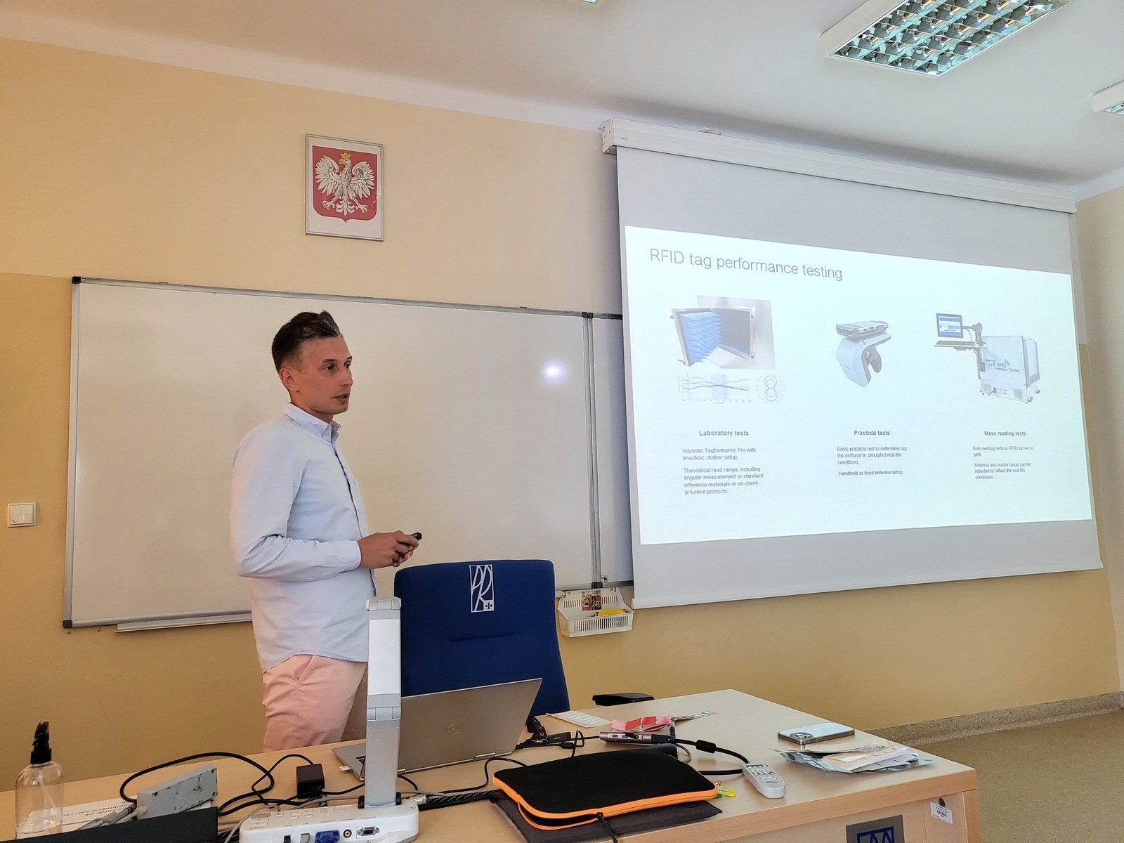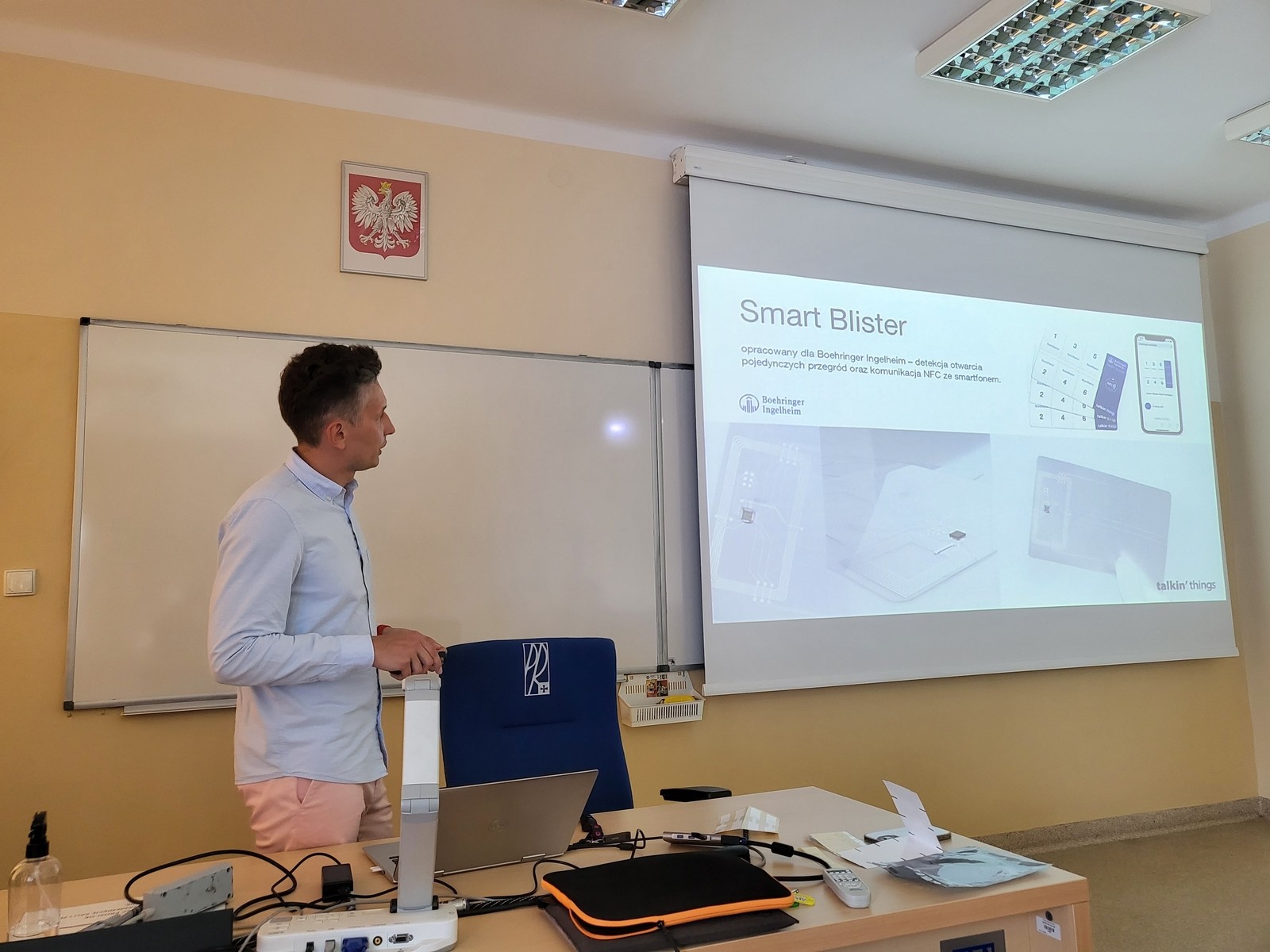W dniu 6 czerwca 2023 roku studenci ostatniego semestru studiów II stopnia na kierunku elektronika i telekomunikacja, w ramach kończących się zajęć z modułu pn. technika radiowej identyfikacji obiektów, mieli okazję do spotkania się z przedstawicielami firmy Talkin’ Things, które zostało zorganizowane z inicjatywy dra hab. inż. Piotra Jankowskiego-Mihułowicza, prof. PRz. W trakcie spotkania odbył się wykład, podczas którego mgr inż. Wojciech Lichoń (Head of R&D), mgr inż. Damian Kawalec (RFID Expert/Sales Manager) oraz mgr inż. Mateusz Chamera (Lead of RFID Tag Development) wpierw zaprezentowali studentom Wydziału Elektrotechniki i Informatyki swoje sylwetki zawodowe, a następnie przedstawili projektowo-produkcyjny profil działalności firmy w zakresie techniki RFID. Podczas prezentacji omawiane były konkretne przykłady projektowania, prototypowania i produkcji w Talkin’ Things identyfikatorów RFID, które znajdują powszechne zastosowania w zautomatyzowanych procesach takich firm, jak np.: Decathlon, Inditex, Boehringer Ingelheim, Sato, Nestle, Calzedonia, L'Oréal, Sanofi, Mango, Goodwill, Mars, Coca-Cola, GSK, P&G, TAKARA-TOMY Company. Było to doskonałe uzupełnienie wiedzy, jaką studenci zdobywali podczas realizowanych zajęć dydaktycznych w przedmiotowym zakresie.