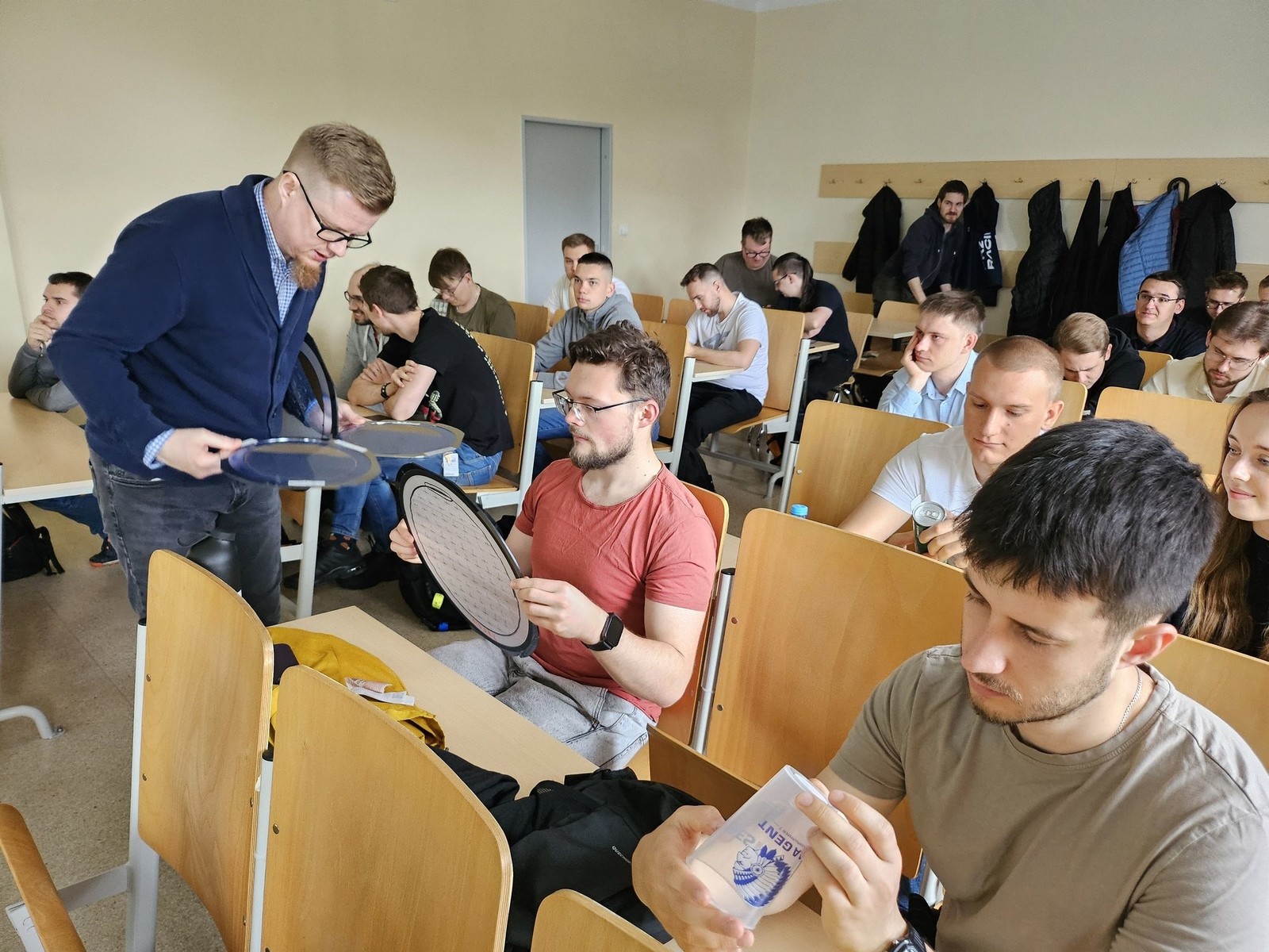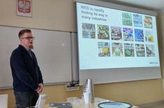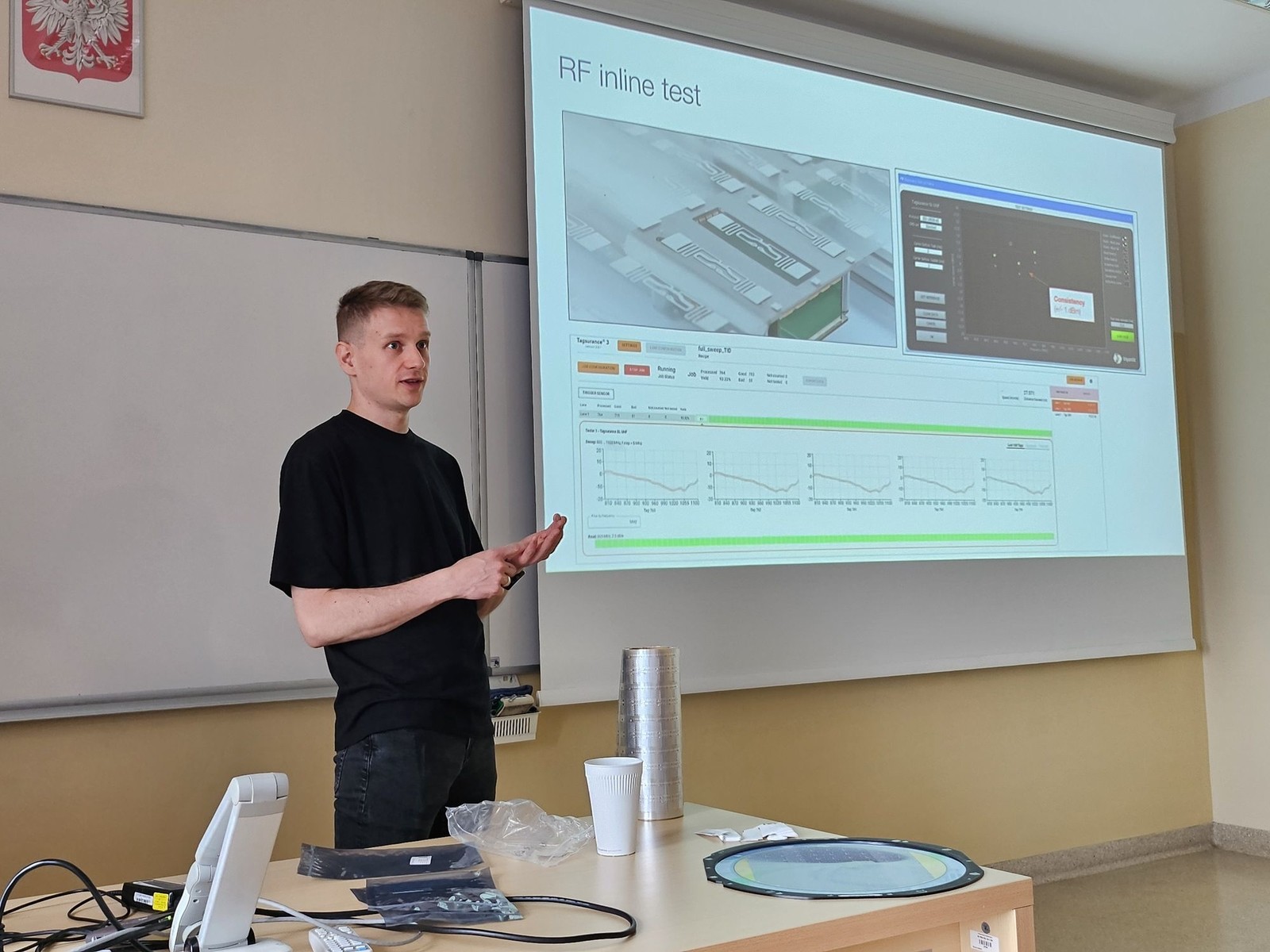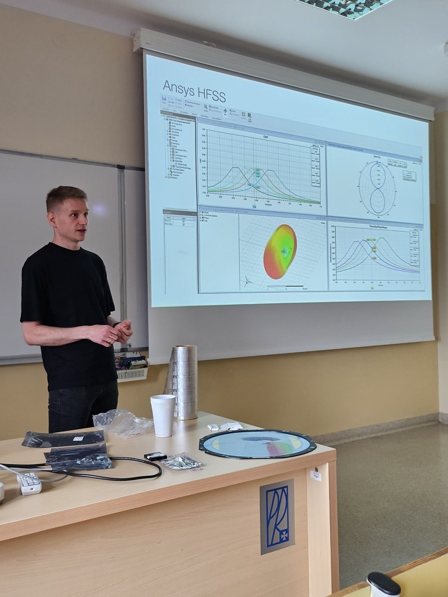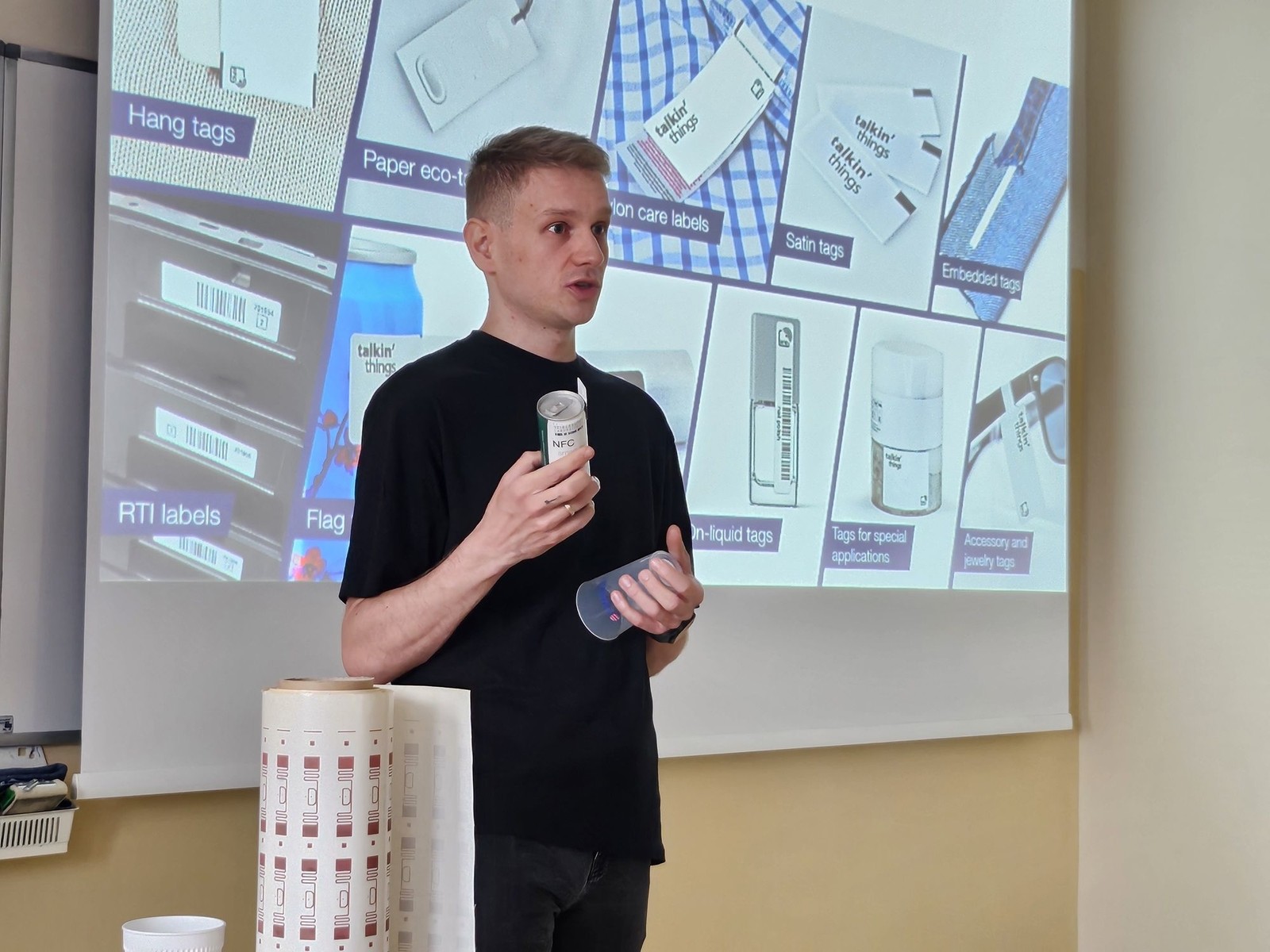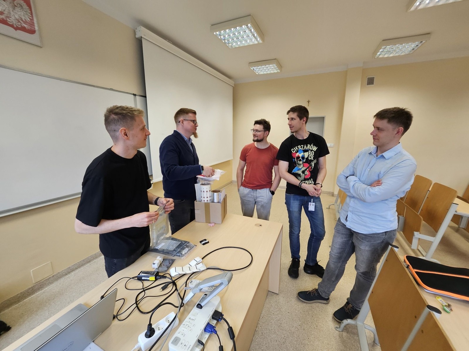 W dniu 3 czerwca 2025 roku studenci ostatniego semestru studiów II stopnia na kierunku elektronika i telekomunikacja, w ramach kończących się zajęć z modułu pn. technika radiowej identyfikacji obiektów, mieli okazję do spotkania się z przedstawicielami Talkin Things SA, które zostało zorganizowane z inicjatywy dra hab. inż. Piotra Jankowskiego-Mihułowicza, prof. PRz w ramach Politechnicznej Sieci VIA CARPATIA. W trakcie spotkania odbył się wykład, podczas którego mgr inż. Wojciech Lichoń (R&D Director) oraz mgr inż. Mateusz Chamera (Lead of RFID Tag Development) wpierw zaprezentowali studentom Wydziału Elektrotechniki i Informatyki swoje sylwetki zawodowe, a następnie przedstawili projektowo-produkcyjny profil działalności firmy w zakresie techniki RFID. Podczas prezentacji omawiane były konkretne przykłady projektowania, prototypowania i produkcji w Talkin Things identyfikatorów RFID, które znajdują powszechne zastosowania w zautomatyzowanych procesach takich firm, jak np.: Decathlon, Inditex, Boehringer Ingelheim, Sato, Nestle, Calzedonia, L'Oréal, Sanofi, Mango, Goodwill, Mars, Coca-Cola, GSK, P&G, TAKARA-TOMY Company. Prezentacja była wzbogacona pokazami półfabrykatów projektowanych anten, wafli krzemowych z chipami wykorzystywanymi w procesie produkcji, a także finalnych rozwiązań konstrukcyjnych identyfikatorów RFID. Było to doskonałe uzupełnienie wiedzy, jaką studenci zdobywali podczas zajęć dydaktycznych realizowanych w przedmiotowym zakresie.