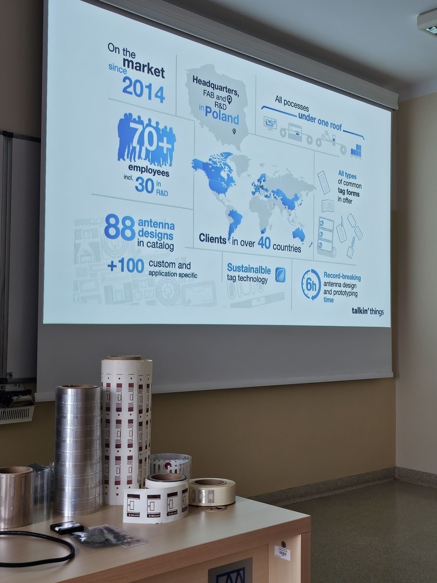 Na podkreślenie zasługuje fakt, że obecni przedstawiciele firmy Talkin Things są absolwentami WEiI PRz, a swoje pierwsze doświadczenia zawodowe zdobywali w zaawansowanych projektach B+R+W realizowanych dla partnerów przemysłowych w ZSEiT. Można więc powiedzieć, że kluczowy potencjał badawczo-rozwojowy firmy Talkin Things został zbudowany na zasobach ludzkich wykształconych przede wszystkim w zespole techniki RFID w ZSEiT PRz. Zaplecze to wpierw było rozwijane w pomieszczeniach budynku A na WEiI, a aktualnie funkcjonuje w Głogowie Małopolskim (Talkin Things R&D Hub). W chwili obecnej spółka posiada w Warszawie linie produkcyjne, na których wytwarza znaczniki RFID autorsko opracowane w Talkin Things R&D Hub. Znaczące jest więc to, że na podstawie potencjału intelektualnego, który został wytworzony w zakresie techniki RFID w ZSEiT PRz, można budować tak innowacyjne przedsięwzięcia w gospodarce na Podkarpaciu, co w miły sposób zostało zasygnalizowane gromkimi brawami, jakimi studenci WEiI podziękowali przybyłym przedstawicielom firmy Talkin Things.