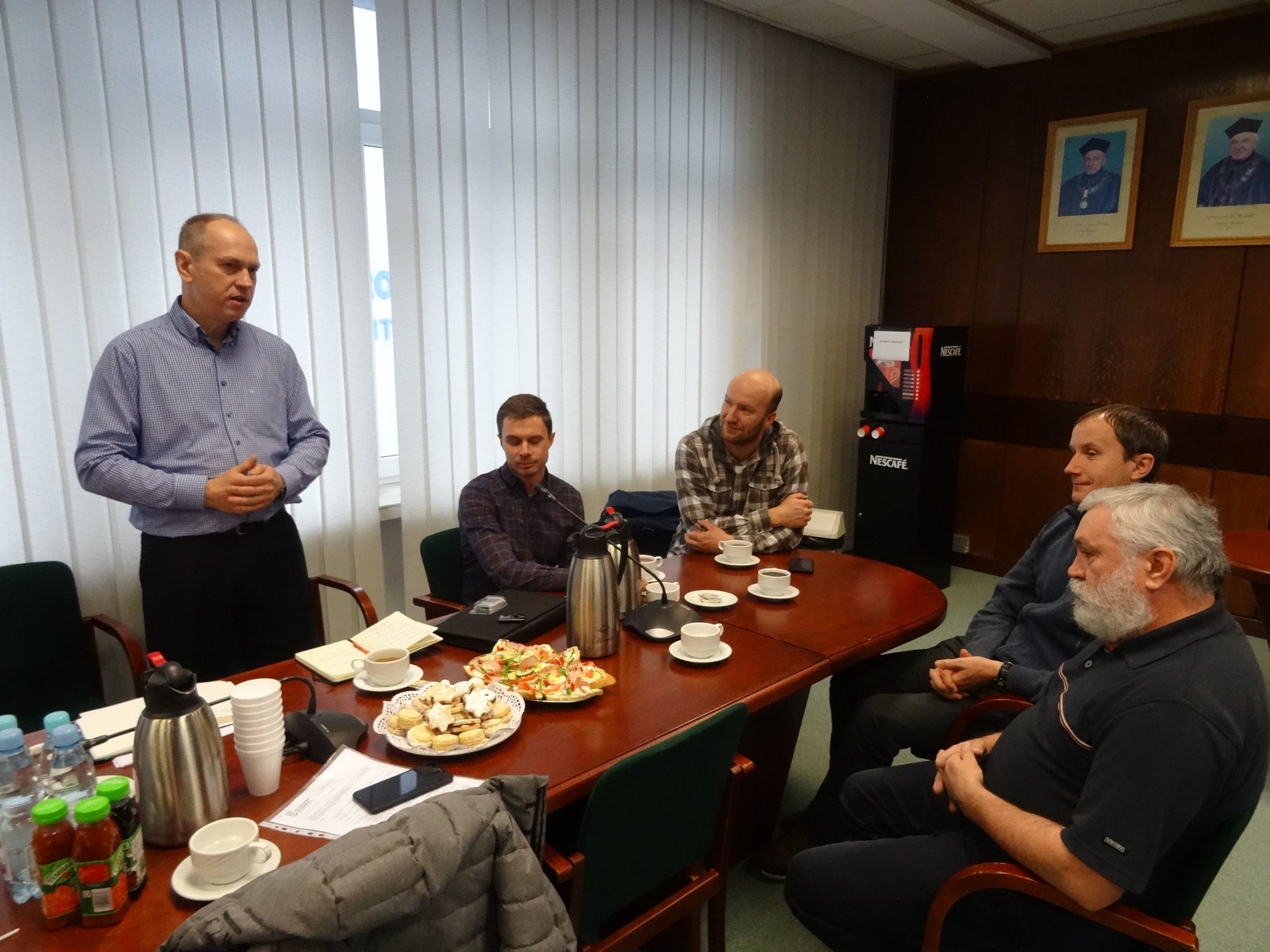 Po dokonaniu inspekcji obu kondygnacji nowej części budynku AL, a także jego wewnętrznej i zewnętrznej infrastruktury, członkowie Komisji udali się na posiedzenie do sali A101 WEiI. W trakcie obrad Przewodniczący Komisji mgr inż. Marek Grabarz szczegółowo omówił przeprowadzone czynności odbiorowe, po których nastąpiła dyskusja, a w jej efekcie podpisanie końcowego protokołu. W trakcie tego posiedzenia wybrani uczestnicy Komisji mieli okazję do podsumowania zrealizowanych prac. W tym kontekście, w pierwszej kolejności Prorektor ds. kształcenia dr hab. inż. Grzegorz Masłowski, prof. PRz omówił znaczenie zrealizowanej rozbudowy dla rozwoju Politechniki Rzeszowskiej. Z kolei Kanclerz PRz mgr inż. Andrzej Sowa dokonał wysokiej oceny przeprowadzonych prac w kontekście ich sprawności i jakości, co w dobie aktualnego stanu branży budowlanej było poważnym wyzwaniem na etapie planowania, uruchomienia, realizacji i zakończenia tej inwestycji. W końcowej części spotkania dr inż. Wiesław Sabat dokonał ogólnej charakterystyki działań PRz w ramach przedsięwzięcia Polskiej Mapy Drogowej Infrastruktury Badawczej ukierunkowanej na zagadnienia EMC w branży lotniczej, a także podziękował Wykonawcy (Firmie MS BUD Maciej Tadla z siedzibą w Boguchwale) za bardzo dobrą współpracę na każdym etapie realizacji przedsięwzięcia. Na zakończenie posiedzenia Kierownik KSEiT dr hab. inż. Piotr Jankowski-Mihułowicz, prof. PRz omówił znaczenie przedmiotowej inwestycji dla rozwoju dyscyplin naukowych WEiI (automatyka, elektronika i elektrotechnika oraz informatyka techniczna i telekomunikacja), w ramach których po 2020 r. będzie dokonywana ewaluacja zgodnie z nowymi uwarunkowaniami Ustawy 2.0. Ponadto Kierownik KSEiT podziękował wszystkim osobom za zaangażowanie, które doprowadziło do pozytywnego zakończenia pierwszego etapu prac w ramach projektu EMC-LabNet. Wyraził on także przekonanie, że kolejne etapy będą realizowane równie sprawnie jak ten, który właśnie dobiega końca.
