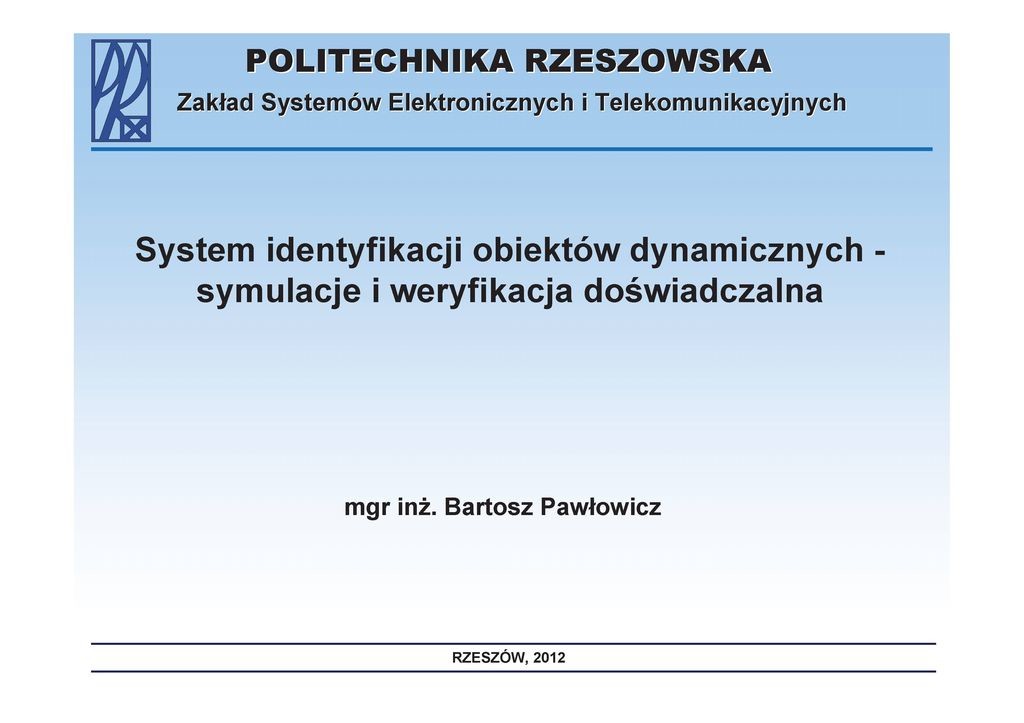 - Bartosz Pawłowicz, System identyfikacji obiektów dynamicznych - symulacje i weryfikacja doświadczalna