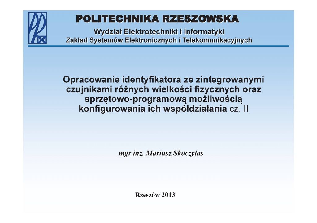 - 2013-10-01 – Mariusz Skoczylas, Identyfikator ze zintegrowanymi czujnikami różnych wielkości fizycznych oraz sprzętowo-programową możliwością konfigurowania ich współdziałania, cz.II