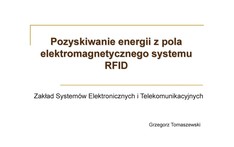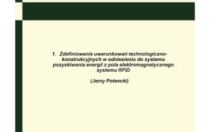 - 2013-07-18 – Potencki Jerzy, Zdefiniowanie uwarunkowań technologiczno-konstrukcyjnych w odniesieniu do systemu pozyskiwania energii z pola elektromagnetycznego systemu RFID