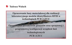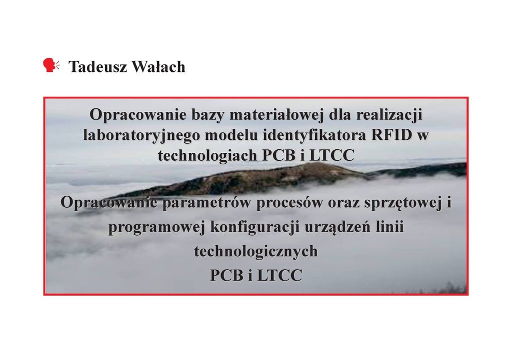 - 2013-07-04 – Wałach Tadeusz, Opracowanie bazy materiałowej dla realizacji laboratoryjnego modelu identyfikatora RFID w technologiach PCB i LTCC