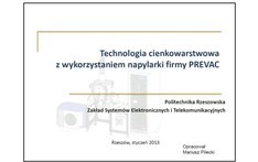 - 2013-01-22 – Pilecki Mariusz, Technologia cienkowarstwowa z wykorzystaniem napylarki firmy PREVAC