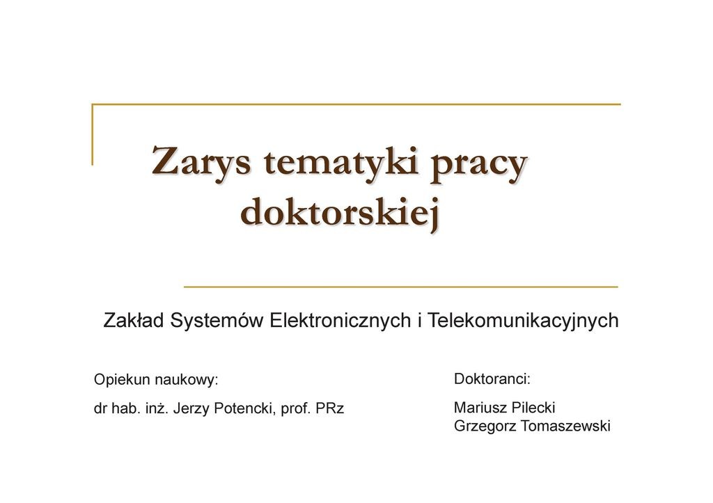 - 2013-07-25 – Klepacki Dariusz, Synteza uwarunkowań energetycznych pozyskiwania energii z bezprzewodowych systemów telekomunikacyjnych pracujących w pasmach UHF warunkach laboratoryjnych; Synteza uwarunkowań propagacji fal elektromagnetycznych w pasmach UHF w warunkach laboratoryjnych